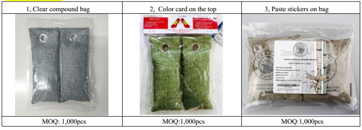 2. سلسلة المنتج: امتصاص الرطوبة المنزلية ، مزيل العرق للثلاجة ، منظفات المرحاض وعاء ، مزيل الرطوبة سيارة ، معطرات الهواء سيارة ، المجففات ، كيس الحاوية الجافة ، امتصاص الأوكسجين ، الخ